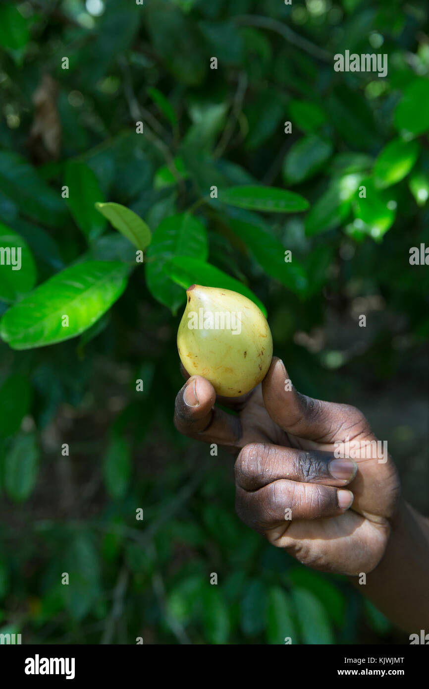 Zanzibar Tanzania A Spice Farmer Holds A Nutmeg Growing At His Stock Photo Alamy May 21 Zodiac