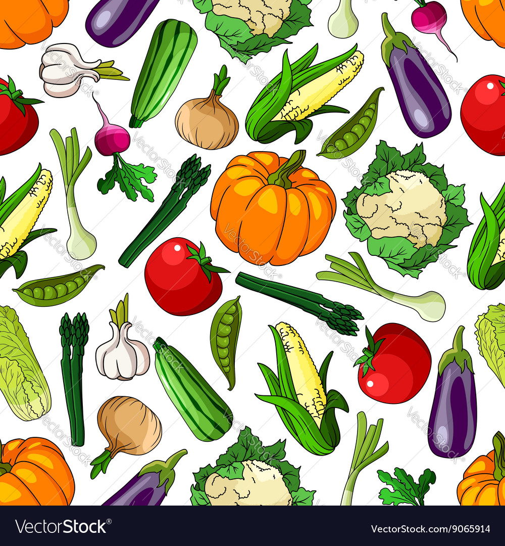 Seamless Farm Grown Organic Vegetables Pattern Vector Image Elements Of Zodiac Signs
