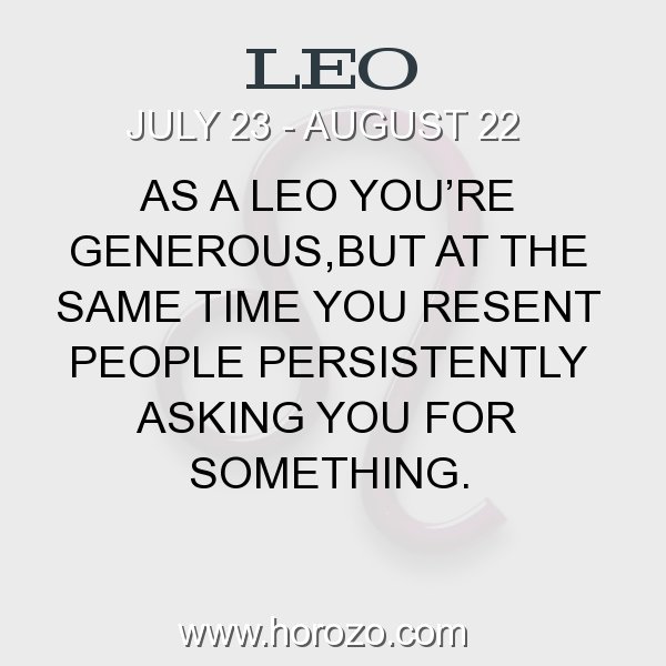 Leo Fact As A Leo You Re Generous But At The Same Time You Resent People Persistently Asking You For Something Virgo Zodiac Sign Meaning Personality